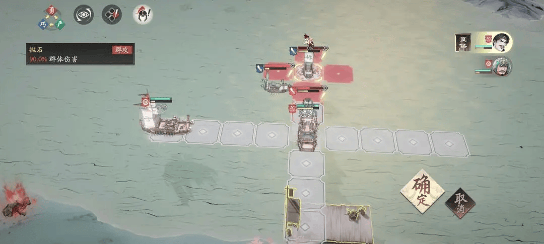 棋盘上除了陆战外,游戏还设计了特色的水战系统,玩家需要建造船只来作战,这种作战方式更加考验玩家对水面上湍流、巨石这类地形的运用,再结合不同船只的属性,形成对敌人的打击。