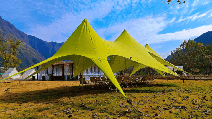 秋高气爽,营地内氛围欢快:大人们准备着烧烤,孩子们玩着游戏,老人们围炉煮茶、闲话家常。“选择这里,主要因为能兼顾老人康养和孩子玩乐。”湖南游客陈先生一家入住了营地的野奢帐篷房,计划用一周时间,深度体验梵净山周边风光。
