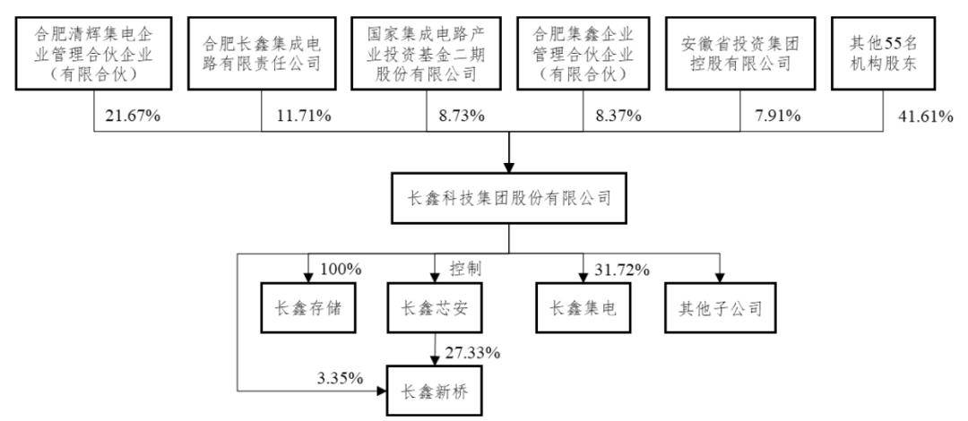 IPO后,清辉集电持股为19.5%,长鑫集成持股为10.54%,大基金二期持股为7.86%,合肥集鑫持股为7.53%,安徽省投持股为7.12%,阿里云计算持股为3.47%,产投壹号持股为1.66%,兆易创新持股为1.62%,招银云亭持股为1.42%,北京峰益、合肥建长、和谐健康分别持股为1.35%,国调基金、阿里网络分别持股为1.01%;