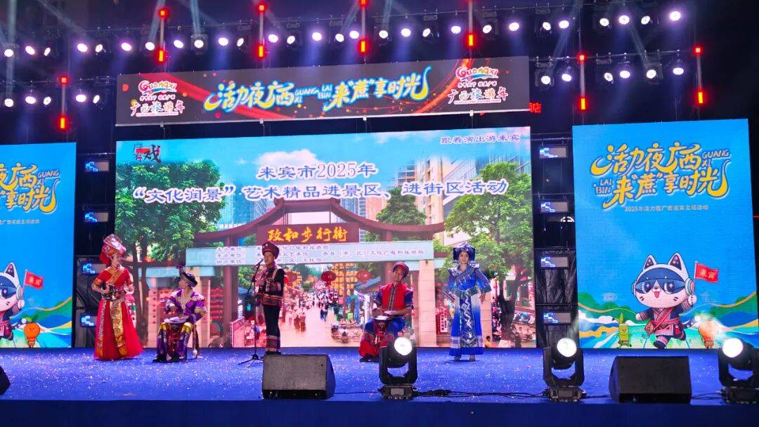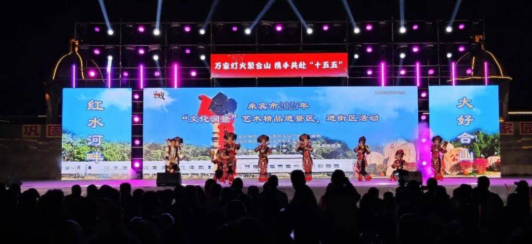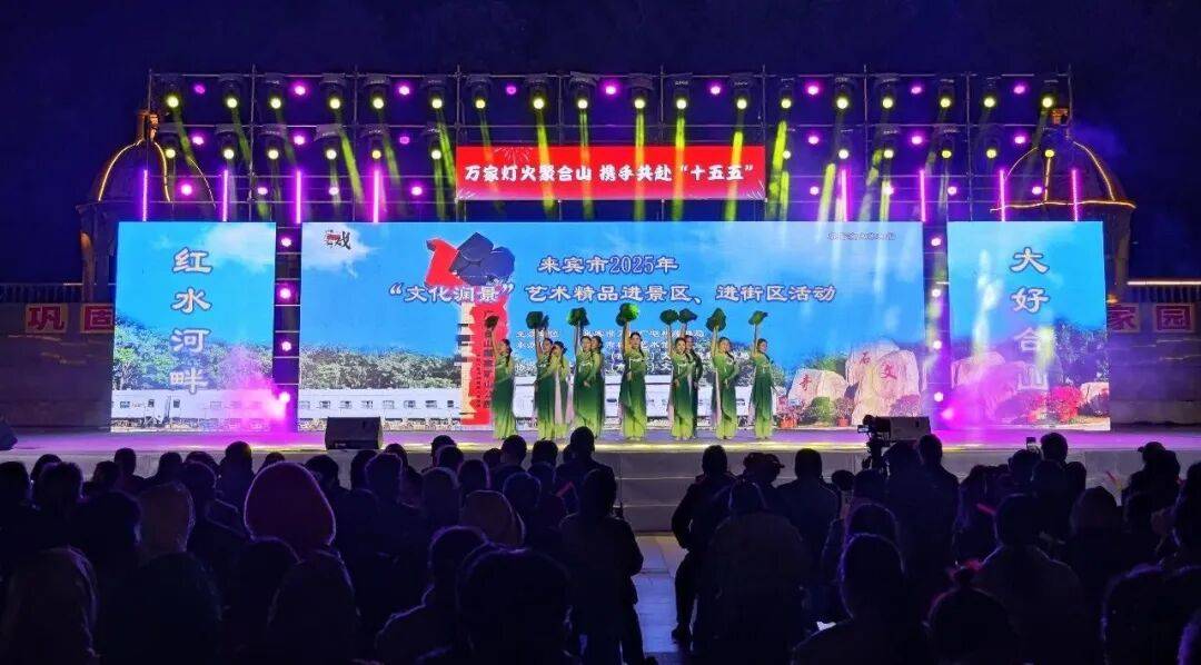 从金秋到初冬,从景区湖畔到市井街区,从壮乡村寨到城市广场,来宾市2025年“文化润景”艺术精品进景区、进街区系列活动历时两月,联动步行街专场与“活力夜广西” 嘉年华主场,6场文艺盛宴轮番上演,以