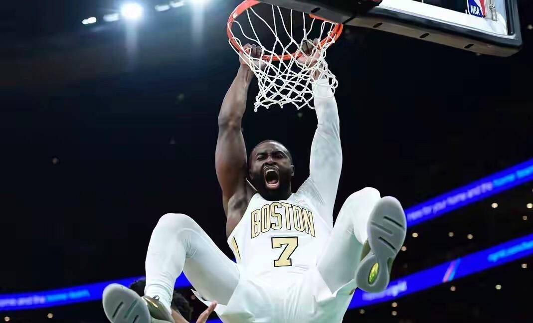 再看其他几场球,其实今天高分不少。 凯尔特人赢老鹰,杰伦-布朗三节打卡就拿了41分6篮板,豪瑟更离谱,三分球21投10中,轰下30分,全是三分线外的出手。