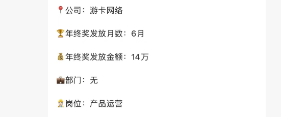 游卡网络: 年终奖发了6个月,发放金额14万(岗位产品运营)。2025年最亮眼的是《三国杀移动版》12月冲上iOS畅销榜第2,创下历史最好的成绩,整个《三国杀》IP运营超过17年依然能打, 之前就传过《三国杀名将传》月流水破2亿了。