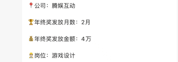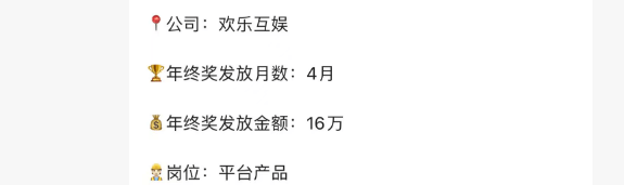 江娱互动: 年终奖发了1个月, 发放金额1万(岗位前端)。2025年闷声发大财, 新爆款《王国之歌》(Top Heroes)上线月冲进Sensor Tower出海收入榜第9名。加上老产品《口袋奇兵》持续稳定,月流水最高到过9000万。代表作品《口袋奇兵》和《王国之歌》。