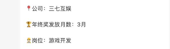 三七互娱: 年终奖发了3个月(岗位游戏开发)。2025年前三季度, 三七的营收124.61亿元,净利润23.45亿元,同比增长23.57% 。三季度单季利润增长近50%,表现相当亮眼 。这主要靠《英雄没有闪》《时光大爆炸》这些新游爆款带起来的,加上销售费用控制得不错 。