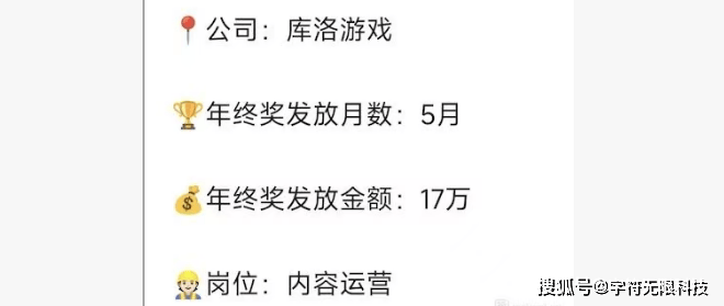 天美工作室(腾讯): 年终奖发了16个月,发放金额74万(岗位游戏客户端开发)。加上基本工资, 这哥们一年的收入妥妥的上百万,这顶多少人的十年奋斗啊。天美的核心项目如《王者荣耀》《元梦之星》等都是爆款, 年终奖发起来肯定不会手软。游戏部门果然还是全村的希望, 能拿到这个数也算是核心的大腿了!老铁们, 看到这74万, 此刻又是怎么想的呢?