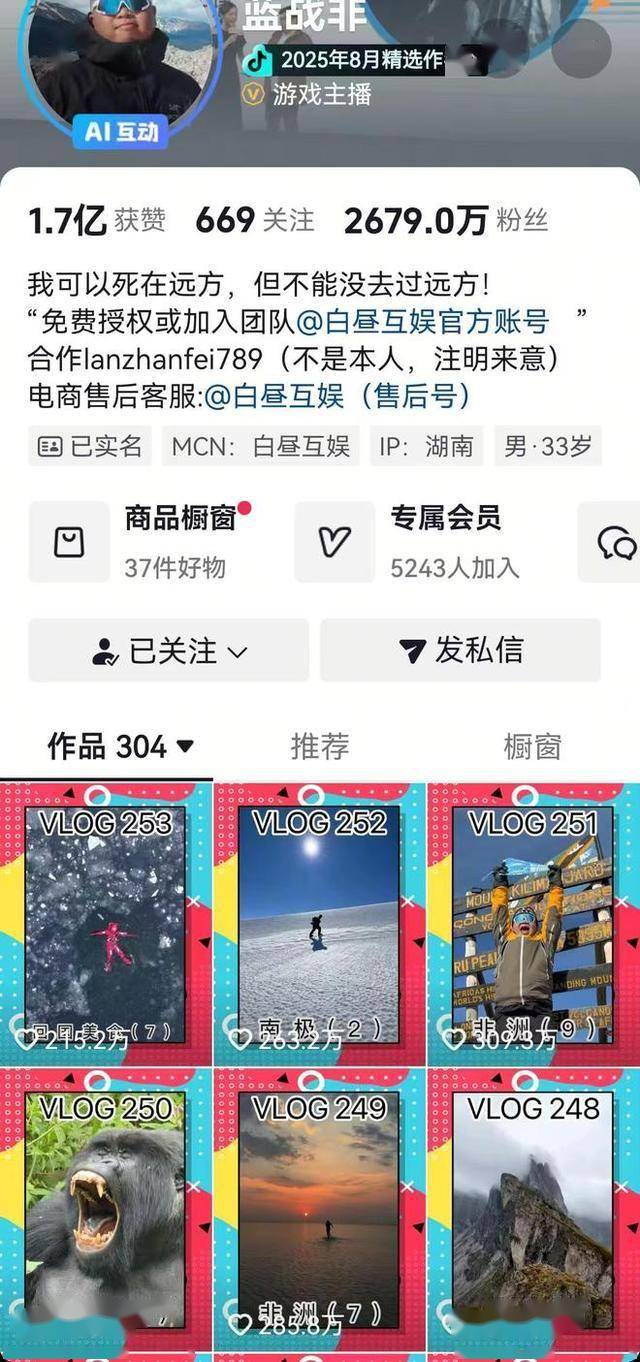 如今的他,坐拥 2679 万粉丝,获赞 1.7 亿,在旅游博主赛道,再次站上了金字塔尖,成为名副其实的头部网红,他曾在直播中直言,只要自己想赚钱,年入过亿不过是轻而易举的事。