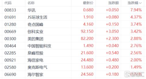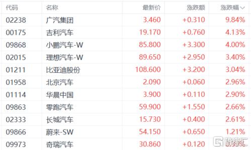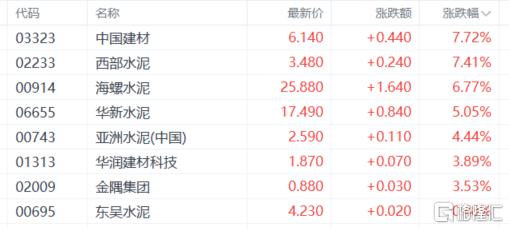 盘面上,近期走低的大型科技股集体回暖带领大市反弹,其中,阿里巴巴涨近4%,百度涨近3%,京东、快手涨2%,小米、美团、网易涨超1.5%,腾讯涨约1%;建材水泥股走高,中国建材、西部水泥涨超7%;航空股拉升,中国东方航空股份涨超9%;汽车股拉升明显,广汽集团涨近9%;家电股、重型机械股、黄金股、博彩股、保险股、半导体股、中资券商股等热门板块齐涨。