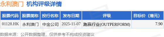 中金发布研报称,永利澳门(01128.HK)业绩表现主要由于低基数效应;博彩总收入市占率从2025年第二季的11.8%提升至第三季的13%。该行基本维持对2025年及2026年经调整EBITDA的预测。该股当前交易于2026年预期EV/EBITDA的7.6倍水平。永利皇宫官网,永利皇宫赌场,永利皇宫娱乐城,永利皇宫注册,永利皇宫,永利皇宫app,永利皇宫发财车,永利赌场,永利集团,永利娱乐城,永利娱乐场,永利澳门,永利博彩,澳门永利皇宫博彩官网,网上澳门彩官网,澳门永利维持“跑赢行业”评级,并基于估值调整将目标价上调4%至7.9港元,隐含2025年预期EV/EBITDA为8.4倍。